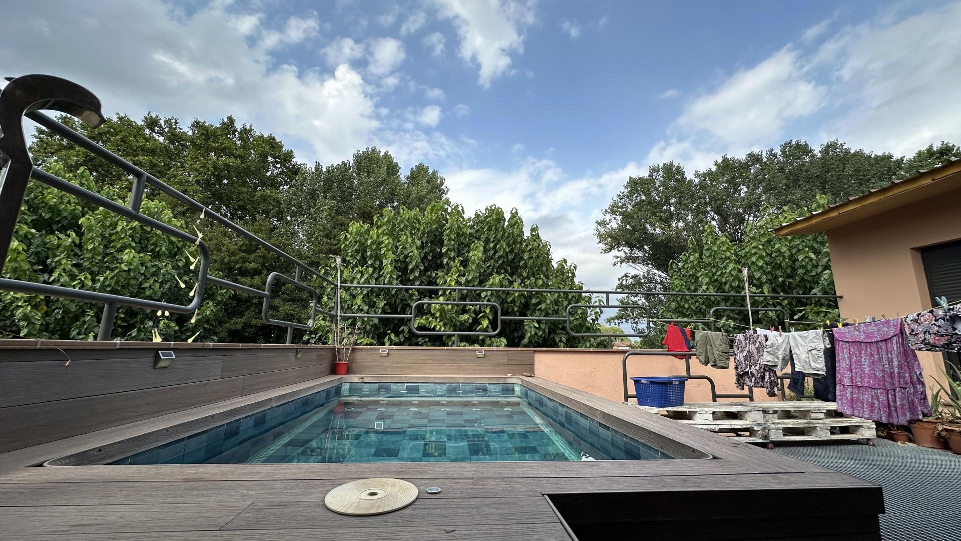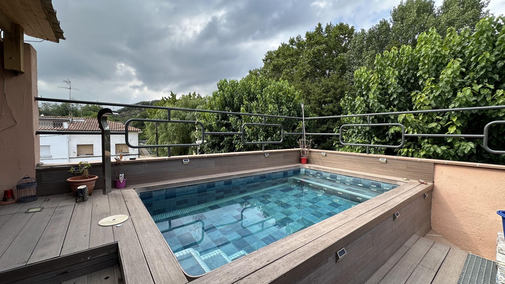 SANT CELONI/LES BORRELLEST imagines tenir-ho tot en un sol habitatge? Aquesta espectacular casa adossada cantonera de 381 m et sorprendrà per espai, comoditat i zones úniques per gaudir amb família i amics. A la planta baixa trobaràs un gran garatge per a 3-4 cotxes i dues sales extra ideals per al teu gimnàs privat o zona d emmagatzematge. A la primera planta t espera una cuina oberta i reformada connectada amb el saló-menjador, amb accés directe a una terrassa àmplia i lluminosa. Disposa de 5 dormitoris (4 dobles i 1 individual) i 3 banys complets moderns amb plat de dutxa. A la segona planta, una segona cuina amb saló-menjador et dóna pas a una terrassa de 40 m . També hi trobaràs una suite amb bany privat amb dutxa d hidromassatge, un dormitori vestidor i un altre bany complet. I la joia de la corona: una espectacular terrassa superior de 60 m amb piscina, jacuzzi i zona de barbacoa. L espai perfecte per relaxar-te, viure l estiu intensament i organitzar trobades inoblidables. Amb terres de gres i parquet, tancaments d alumini i calefacció de gasoil, aquesta casa ho té tot per convertir-se en el teu nou llar ple de confort i estil. No deixis escapar aquesta oportunitat única a Sant Celoni.